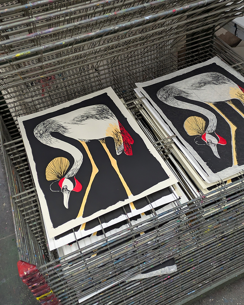 Grue royale sérigraphiée à la Haute École des Arts du Rhin.