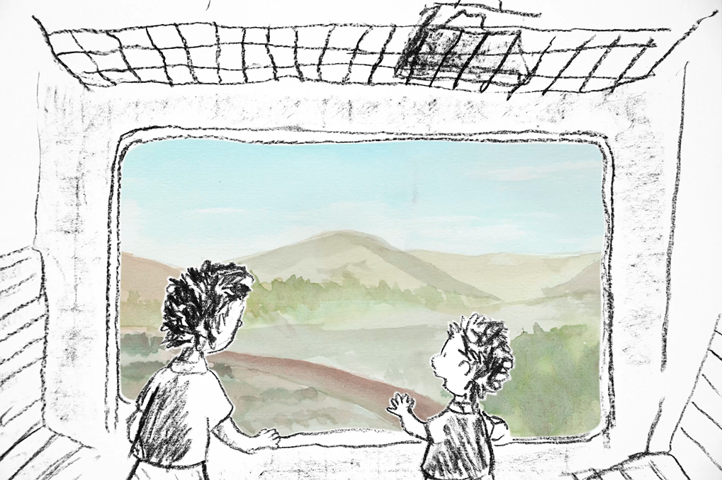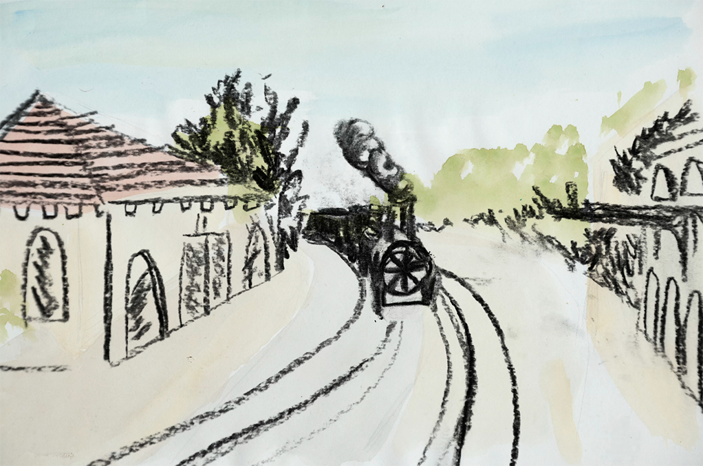 Marseille dans les années 40 dans une animation au fusain. À travers les couleurs, les lumières et les traces de fusain j’évoque ses émotions ressenties lors d’un départ en voyage le temps de vacances scolaires.